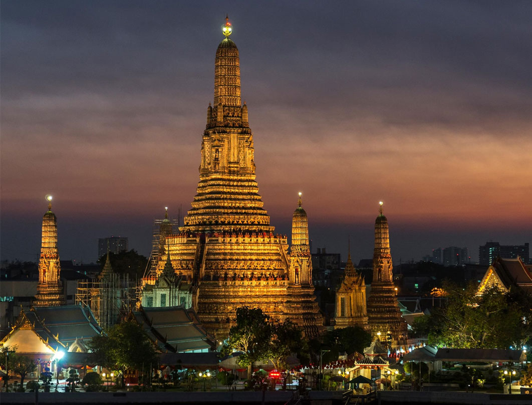 Morning: Visit Wat Arun (Temple of Dawn) and enjoy the stunning riverside views and intricate porcelain decorations. Afternoon: Explore the Chatuchak Weekend Market (if visiting on the weekend) or visit Siam Paragon for upscale shopping and dining. Evening: Enjoy a traditional Thai dinner at a local restaurant and perhaps visit a rooftop bar for a panoramic view of the city skyline. Overnight: Stay at your hotel
